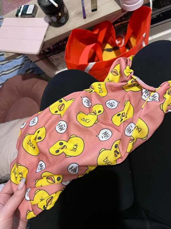 "OMG, love these pet onesies!😍 My little furball just looks adorable in them. They're super comfy and the fit is perfect. The fabric is very breathable, so my pet stays cool even when it's warm outside. Definitely buying more as gifts!🐾❤️"